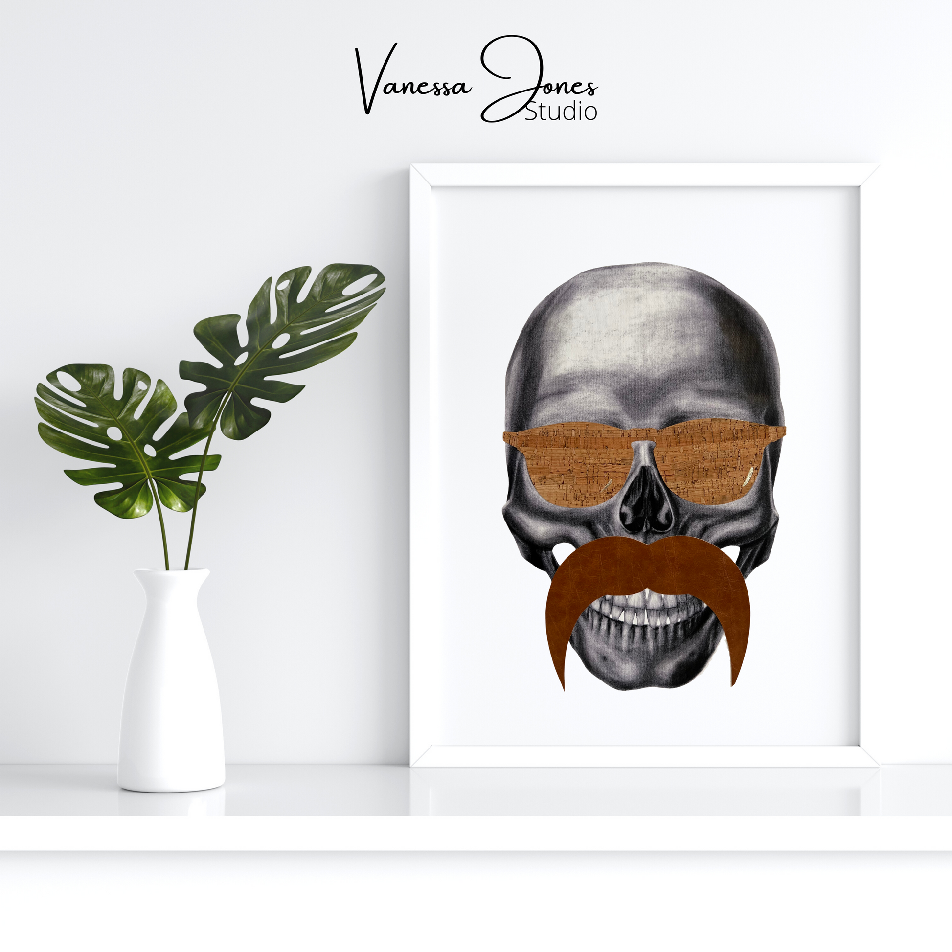 Skull Pop Art - Hand embellished canvas skull print. Choose from a fun mix of sunglasses and mustache colors / textures.